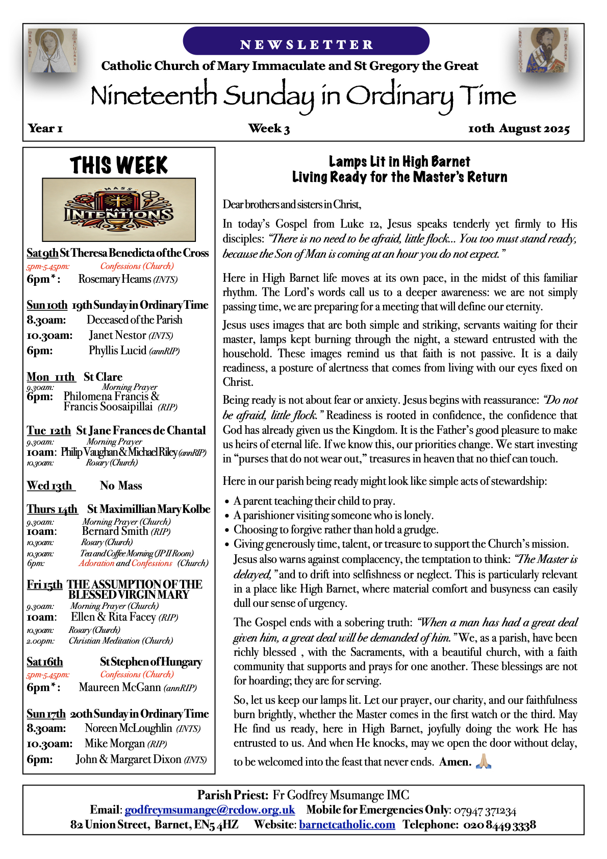 10th August 2025 – 19th Sunday in Ordinary Time